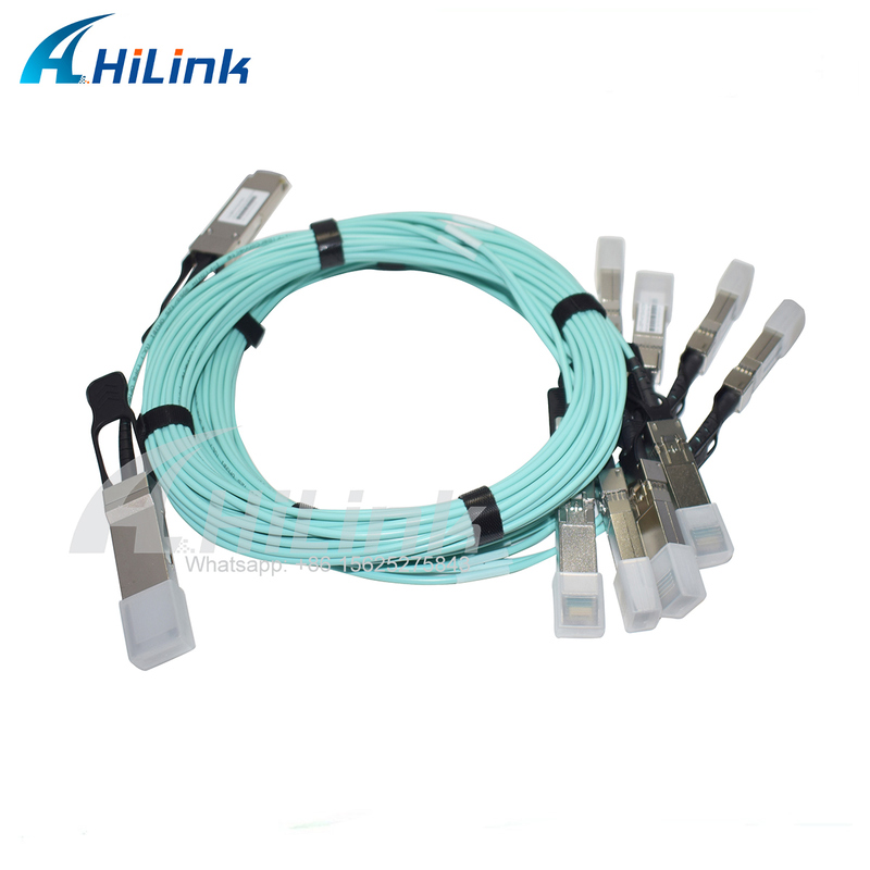 Hilink's QSFP+ to 4xSFP+ 10G active optical cables are suitable for very short distances and offer a very cost-effective way to establish a 40-gigabit link between QSFP ports to SFP+ 4 ports of switches within racks and across adjacent racks.